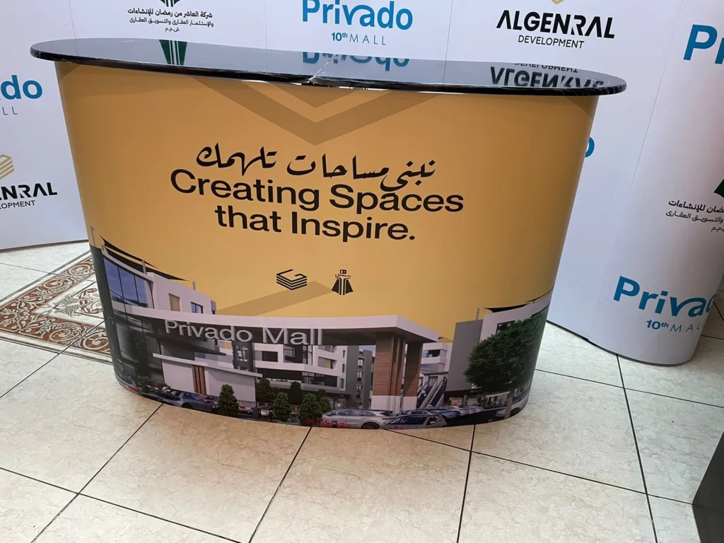 تجهيزات معارض فورية: ستاندات عرض سهلة التركيب والنقل، مطبوعة بجودة عالية للمؤتمرات والفعاليات.